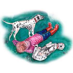 Dalmatians are constant ad faithful companions and given the chance they will never leave your side. Monty lives with Robin on the farm and shares all of the ups and downs that happen in a small boys life. Always there, for fun and games, or as a shoulder to cry on. Part of the way through the story Dizzy, a Dalmatian puppy, joins the family giving Robin another playmate and friend.